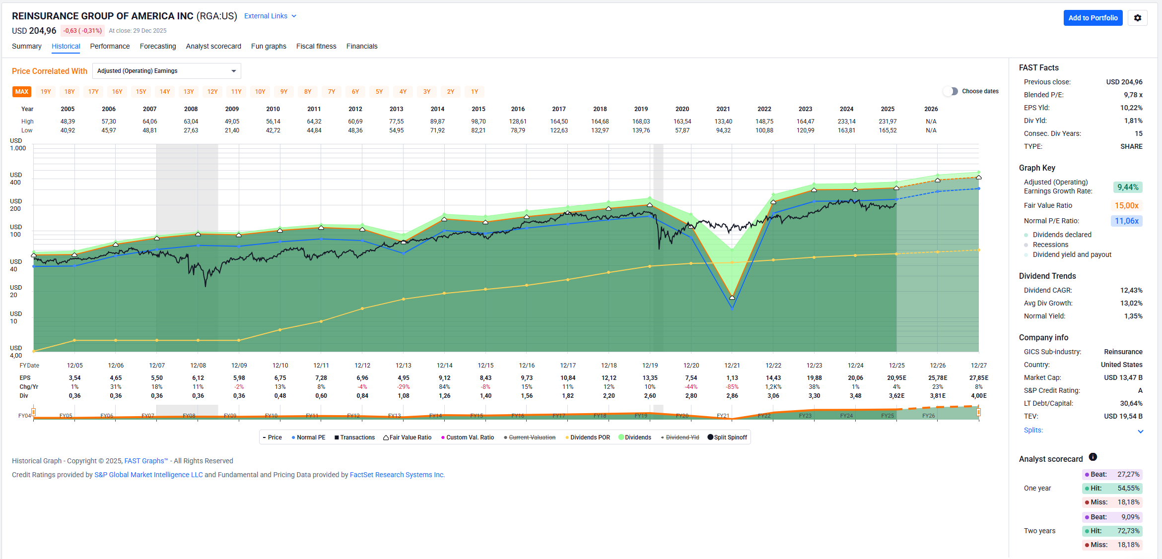 Reinsurance Group of America (US7593516047 / A0RC70 / RGA)